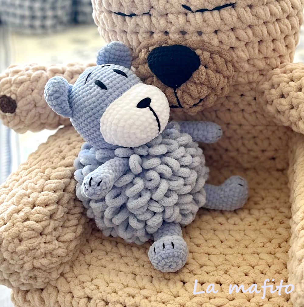 Medvídek je ručně uháčkovaný ze žinylkové příze Alize Puffy. Složení příze 100% mikropolyester,…