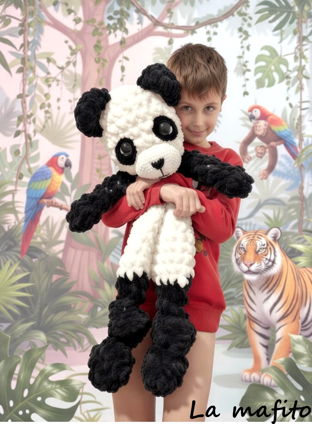 Panda je ručně uháčkovaná ze žinylkové příze Alize Puffy.